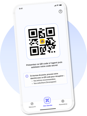 Vous présentez uniquement le QR Code de votre application L’Identité Numérique à un chargé de clientèle et saisissez votre code secret pour valider le retrait de vos colis ou courriers.
