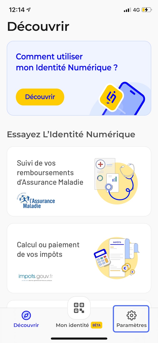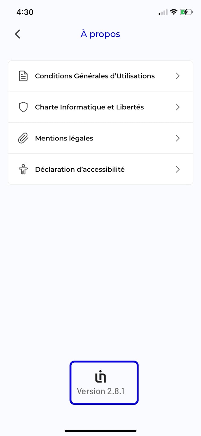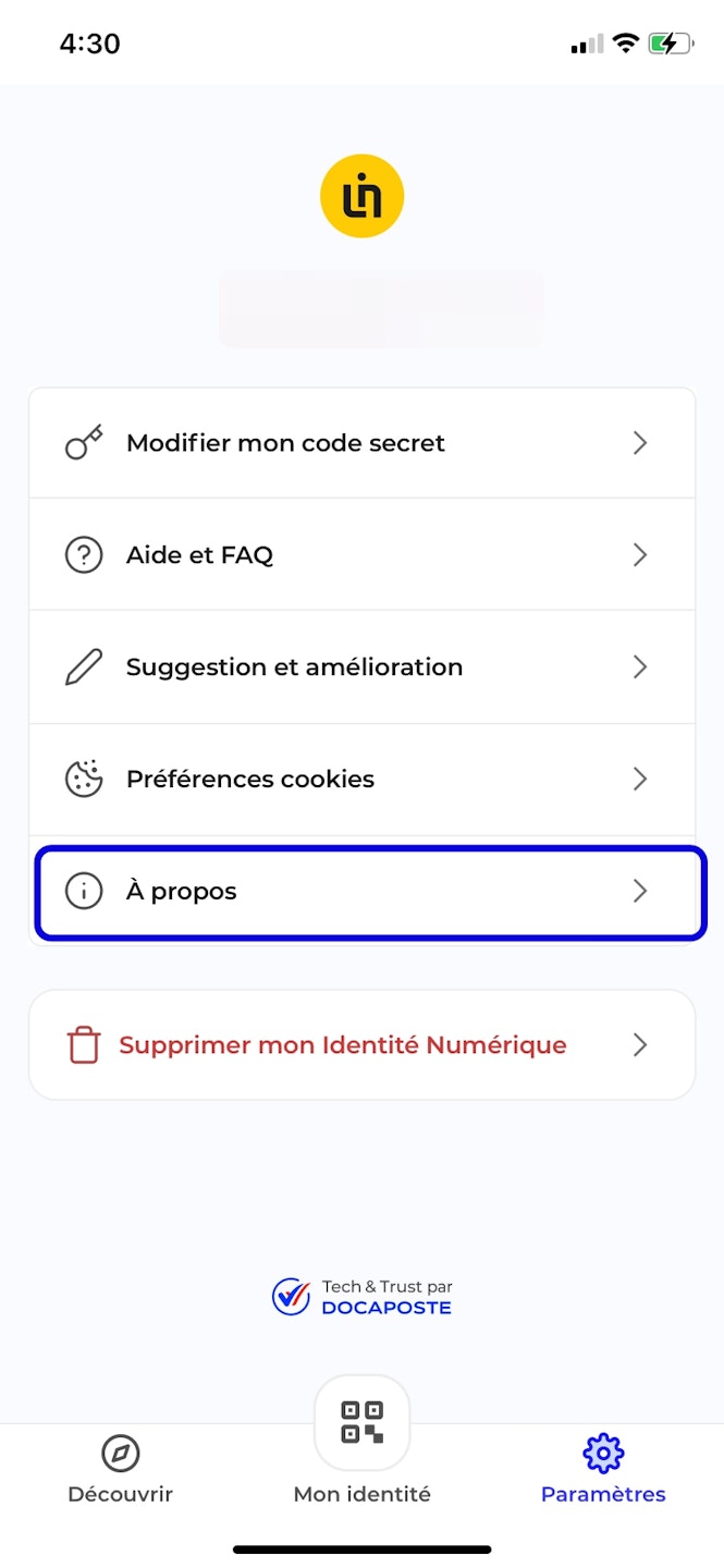 Pour trouver la version de votre application L'Identité Numérique il vous suffit de vous rendre sur votre application :