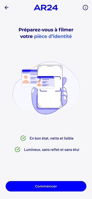 votre visage, en effectuant les actions demandées, afin de s'assurer que vous êtes bien le propriétaire de la pièce d'identité présentée.